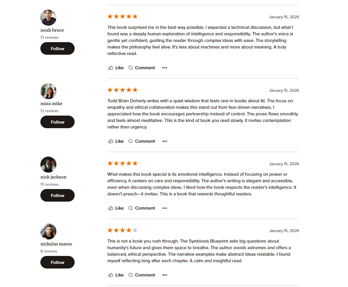 Through poetic language and grounded examples, The Symbiosis Blueprint becomes a map, a guide for living, creating, and evolving alongside the most transformative intelligence our species has ever known.